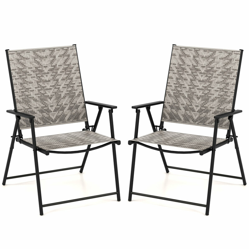 Komfortable, sammenklappelige terrassestole i rustfri stål og PE‑rotting, klar til brug, holdbare, ergonomisk design, bærer op til 160 kg, let at opbevare, leveres i sæt af 2.
