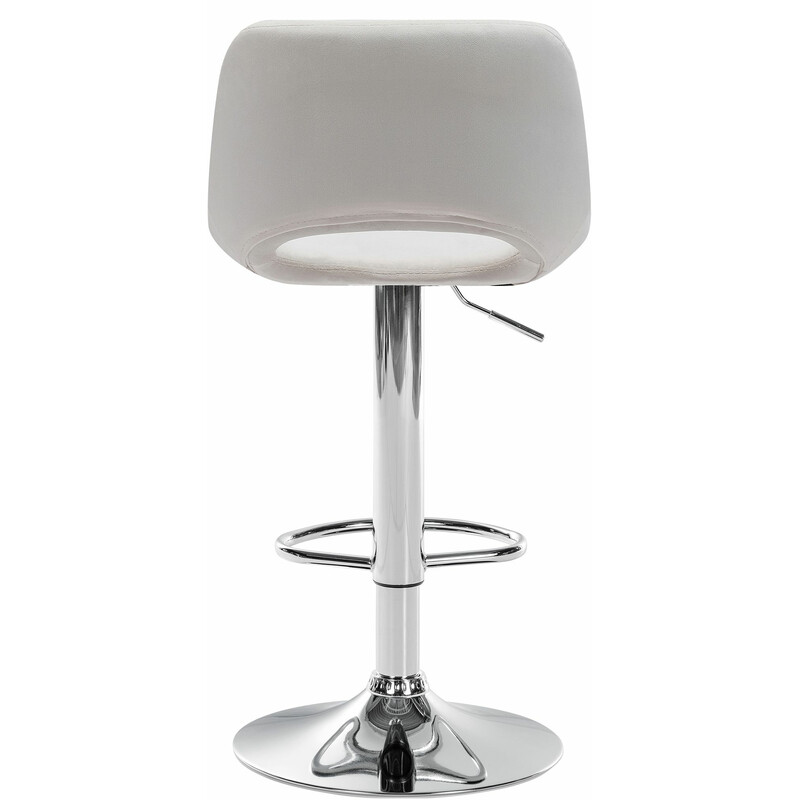 Komfortable, justerbare barstole med fløjlsbetræk, 360° drejning, integreret fodstøtte og gulvbeskyttere. Polstrede sæde og ryg, bærer op til 110 kg, let at rengøre i køkkenet eller hjemmebaren.