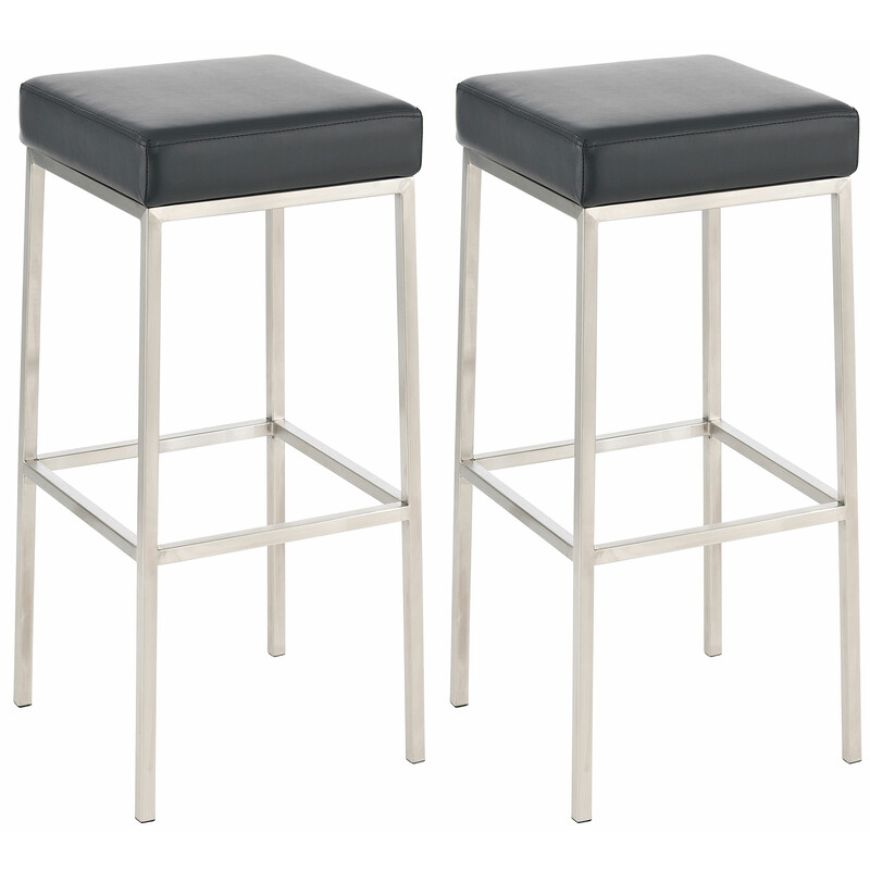 To stilfulde barstole med polstret kunstlædersæde, robust metalramme, fodstøtte, kompakt design og let vedligeholdelse. Perfekt til hjem og offentlige rum med holdbar finish og behagelig siddekomfort.