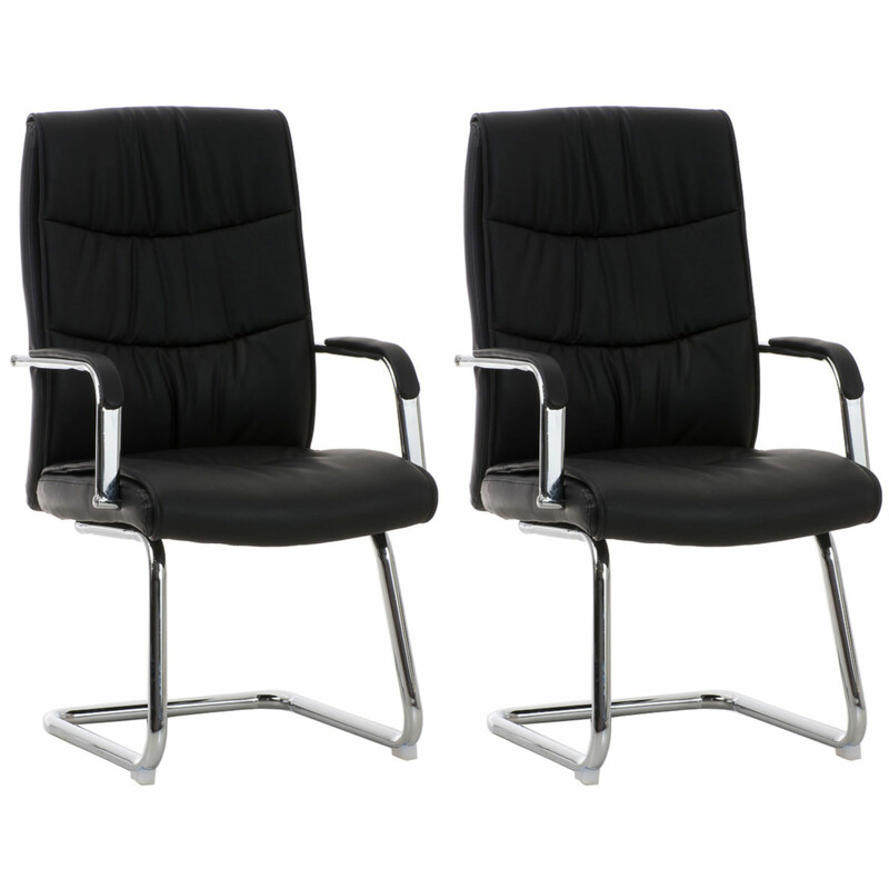 2‑stolssæt moderne kunstlæderstole med kromramme armlæn og høj ryglæn