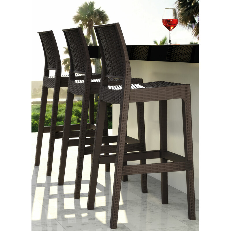 Barstolene er fremstillet af vandafvisende og UV-bestandig plast, så de er fuldstændig vejrbestandige og modstandsdygtige over for pletter, snavs og fugt. Selv hyppende og kraftig solskin får ikke plasten til at gulne eller falme. Således bevarer stolens farve sig i lang tid. Den firebenede konstruktion indeholder tværstykker, som både øger stabiliteten og fungerer som benstøtte.