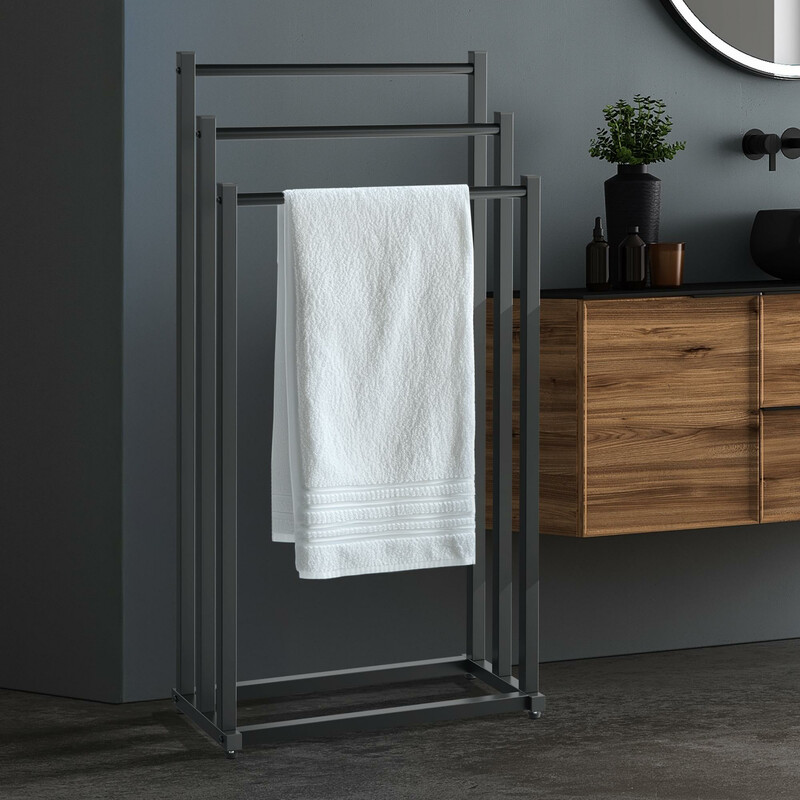 Stående bambus håndklædeholder med tre stænger 46x24x84 cm