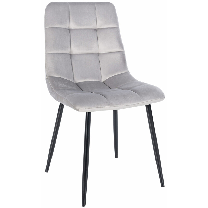 Denne polstrede stol er det perfekte supplement til moderne og hyggelige rum, og den tiltrækker opmærksomhed i ethvert rum. Den høje rygstøtte samt den behagelige og komfortable polstring muliggør behageligt sidde i lange perioder. På grund af de letplejede materialer er spisestolen hurtig og nem at rengøre. Den moderne metalramme med fire ben sikrer stolens stabilitet i alle situationer, og beskyttelserne under benene forhindrer ridser på gulvet.