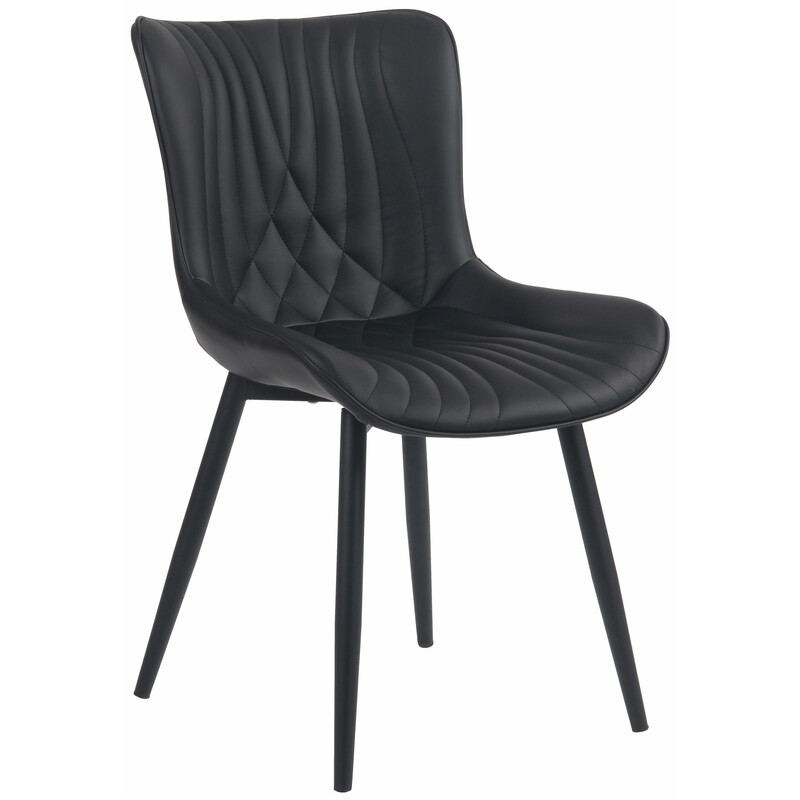 Stilfuld stol i fløjl eller kunstlæder, robust metalramme, polstret sæde og ryg, ergonomisk, holder op til 120 kg, let at vedligeholde, komfortabel til lange måltider.