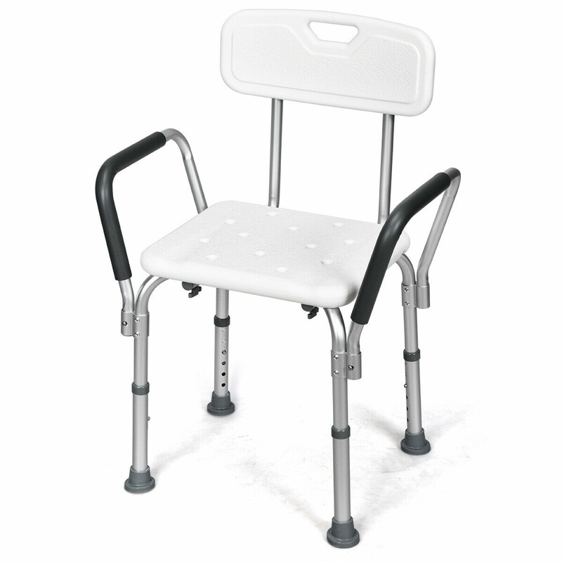 Duschstol justerbar højde seks niveauer aluminiumramme hvid med ryggstøtte 150 kg