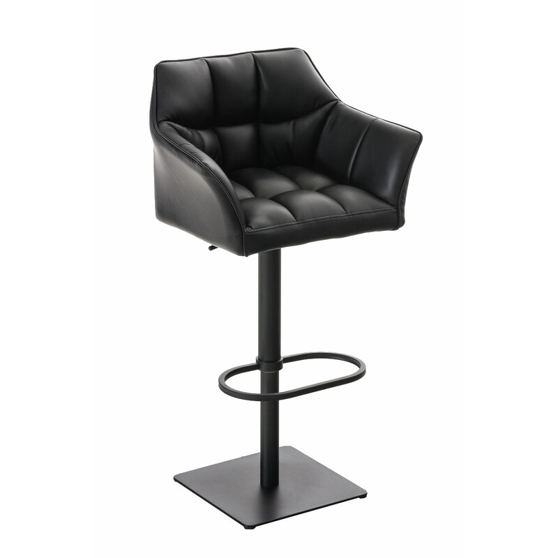 Den kvalitets kunstlæderbetræk fås i forskellige farver, hvilket muliggør alsidig indretningsdesign. Den kompakte ramme er udstyret med en glat drejemekanisme og trinsfri højdejustering via en brugervenlig håndtag. Fodstøtten i midten af rammen sikrer den korrekte siddeposition.