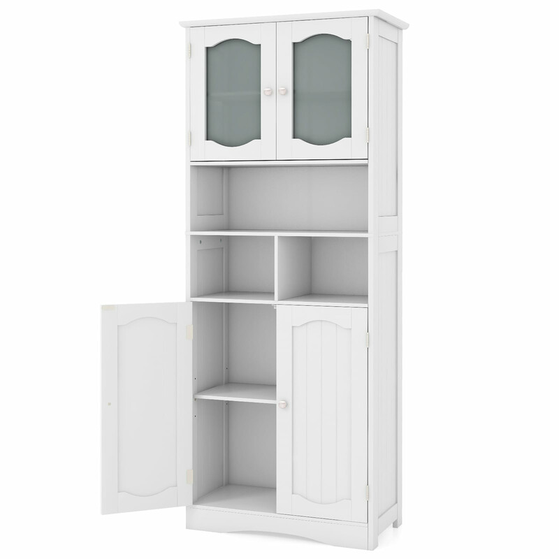 Toiletopbevaring med 3 hylder og 4 kroge i hvid metalramme