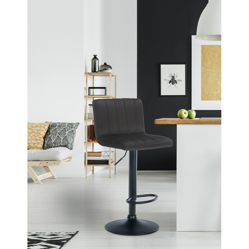Jamie barstol med fløjlsovertræk højdejustering drejelig sort metalramme