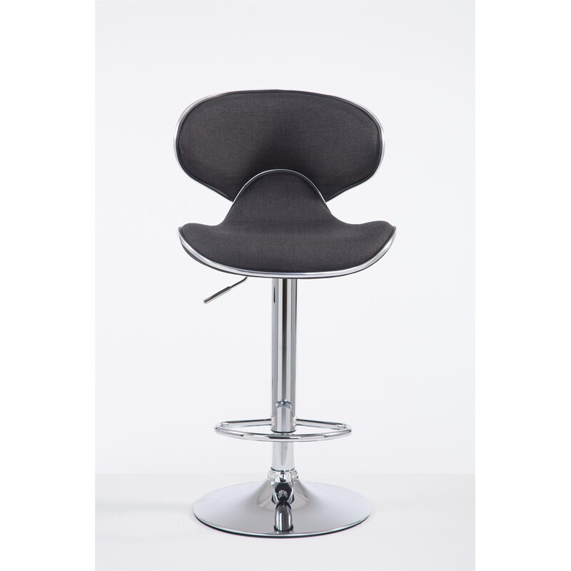 Elegant barstol med letplejet stof, justerbar højde via gasfjeder, robust metalramme i krom, sort eller hvid, kort rygstøtte, fodplade med gulvbeskyttelse, komfortabel i timevis.