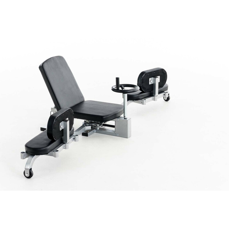 Sæt dig på den polstrede sæde, placer fødderne og juster den ønskede vinkel med hjulet. Fodspredderen forbliver i denne position, indtil hjulet drejes tilbage. Takket være denne trinløse justerbare drejemekanisme kan strækningen udføres langsomt og kontrolleret. Derudover kan ryglænken justeres for målrettet strækning af specifikke sener. De tre justeringsmuligheder for fodpolstringen sikrer komfort for brugere i alle størrelser.