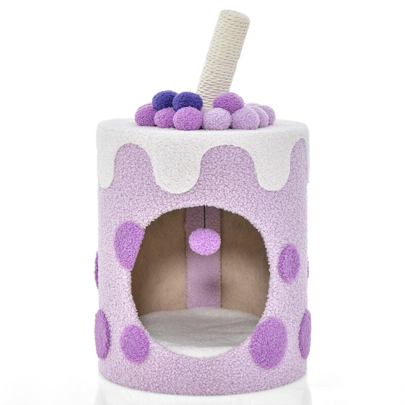 Giv dine katte glæde og dit hjem et stilfuldt touch med dette mælkete‑inspirerede klatretræ. Designet med en rummelig hvileplads og et hængende bollelegedyr tilbyder dette multifunktionelle kattecenter dine kæledyr mulighed for at hoppe, lege og sove.
