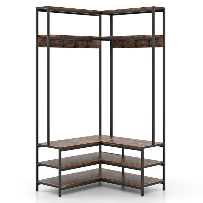 Ge dit hjem en praktisk og stilren opbevaringsløsning, der kombinerer tøj- og skoforvaring med displayhylder. Denne hjørnestativ er den perfekte opbevaringsløsning til dine daglige behov.