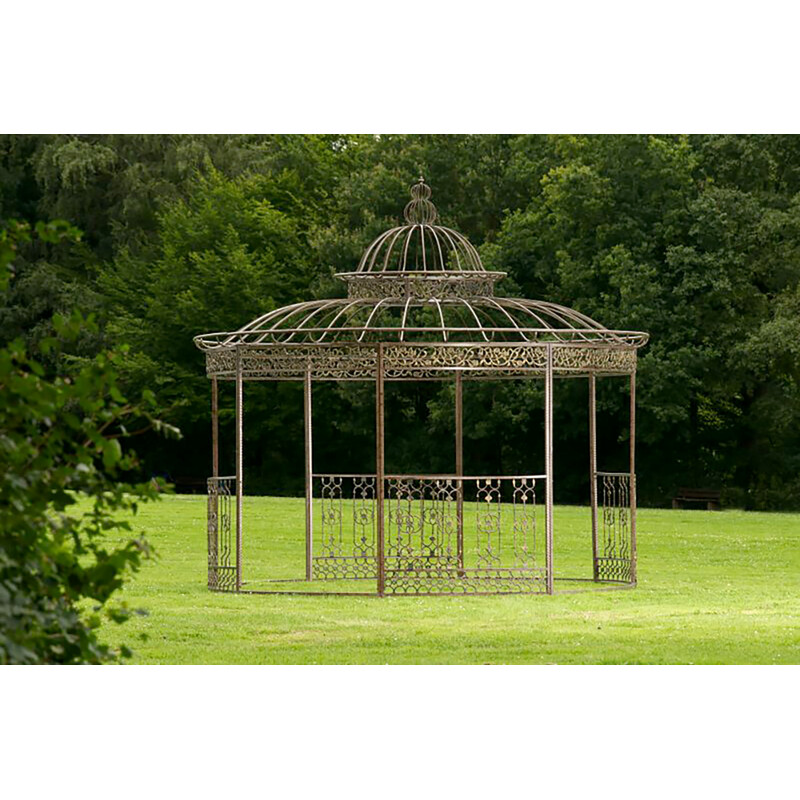 Luksuriøs rund havepavillon med antik rustpatina og otte søjler