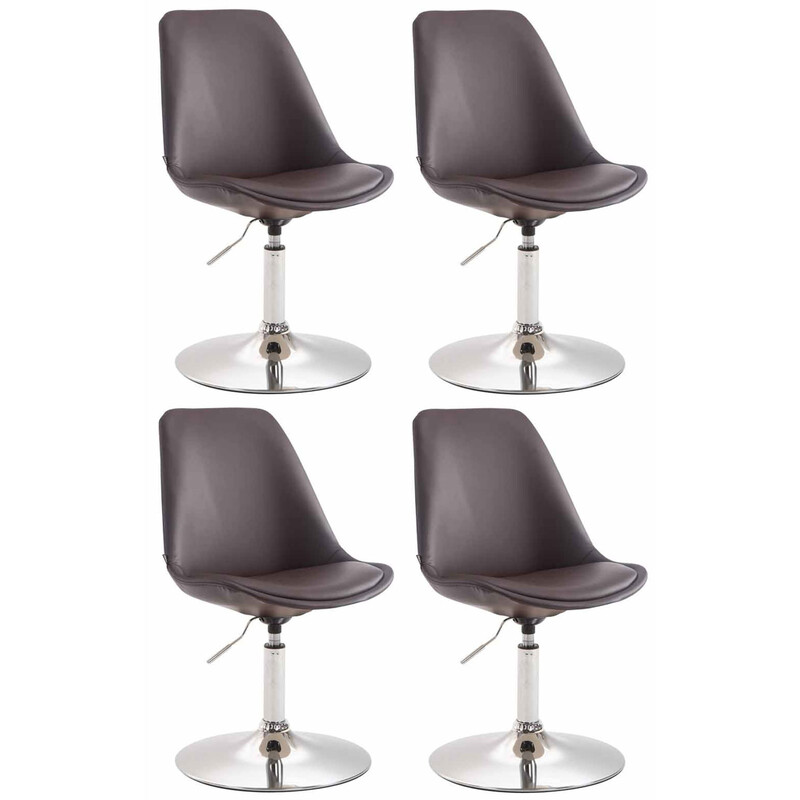 Moderne spisestol med kunstlæder, polstret sæde og ryg, højdejusterbar, 360° roterende. Stabilt metalben i krom, sort eller hvid. Komfortabel og let at vedligeholde i hjemmet.