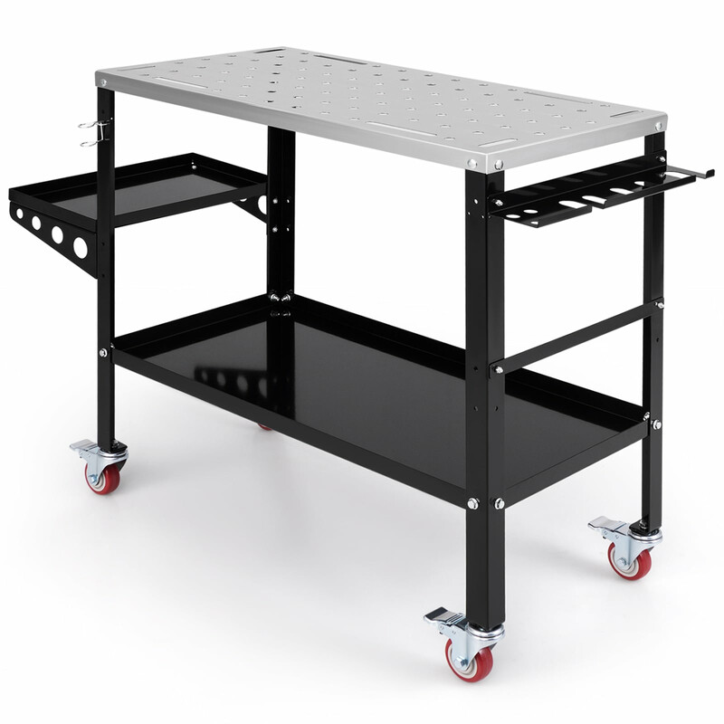 Mobil metal svejsebord 128x46x88 cm 360 kg bæreevne 4 låsbare hjul