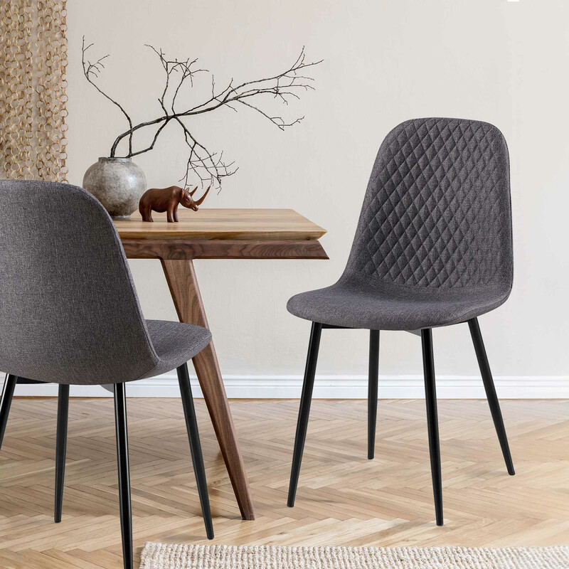 Komfortable og stilfulde stole til daglig brug. Sædeområdet er beklædt med et letplejet stof, der ser indbydende ud. Sædet har også dekorative sting. Moderne metalben i fire sikrer stolens stabile position i alle situationer. Under benene er der beskyttelser, der forhindrer ridser på gulvet. Disse polstrede stole giver et moderne udseende og supplerer alle indretninger fremragende.