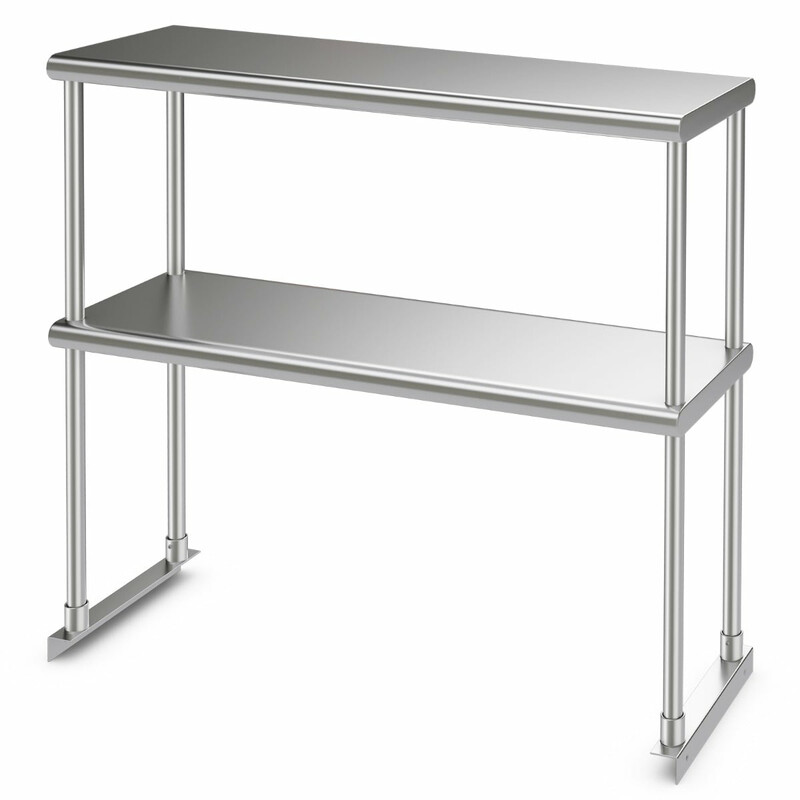 Denne to-etagers hylde er fremstillet af holdbart 18-gauge type 430 rustfrit stål, hvilket garanterer fremragende modstandsdygtighed mod rust og deformation. Let at vedligeholde ved at tørre af med en fugtig klud.