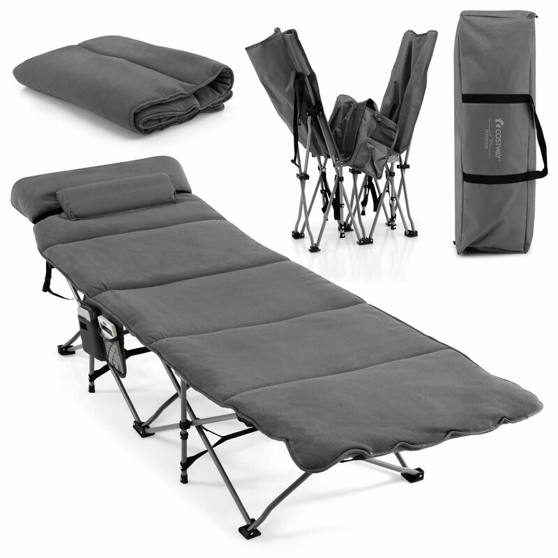 Søger du en behagelig og praktisk løsning til udendørs aktiviteter eller som gæstebed? Denne alsidige sammenklappelige seng tilbyder fremragende komfort og holdbarhed. Fremstillet af åndbart og slidstærkt Oxford-stof er denne seng bygget til at holde længe. Den aftagelige madras af elgehudsfleece er blød og hudvenlig, hvilket garanterer en behagelig søvnoplevelse. På varme sommerdage kan du fjerne madrassen for en køligere og mere luftig oplevelse.