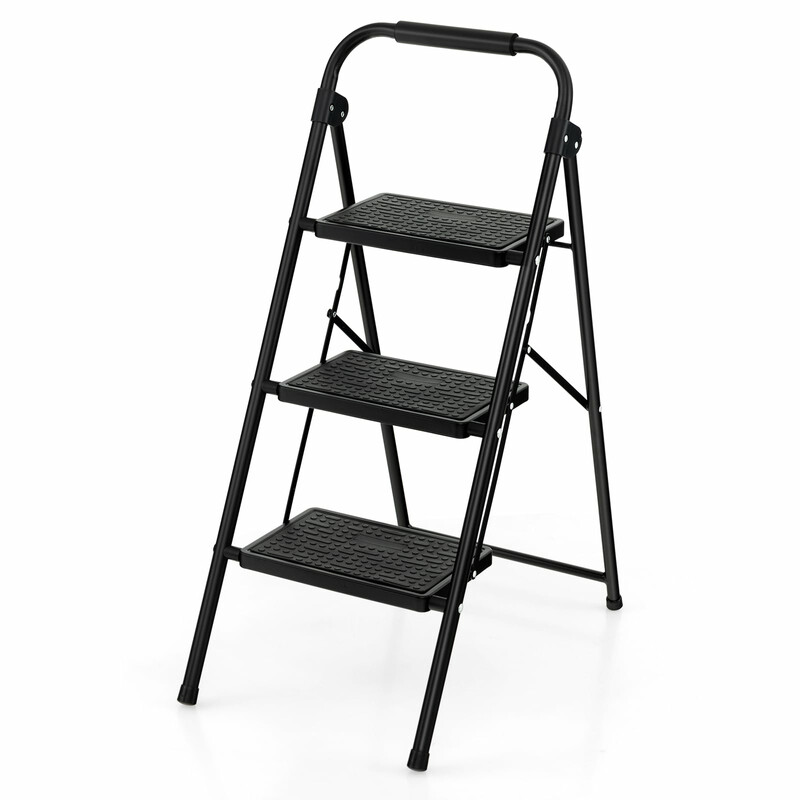 Sammenklappelig stige metal sort 3 trin 64x39x90 cm ikke-glidende håndtag