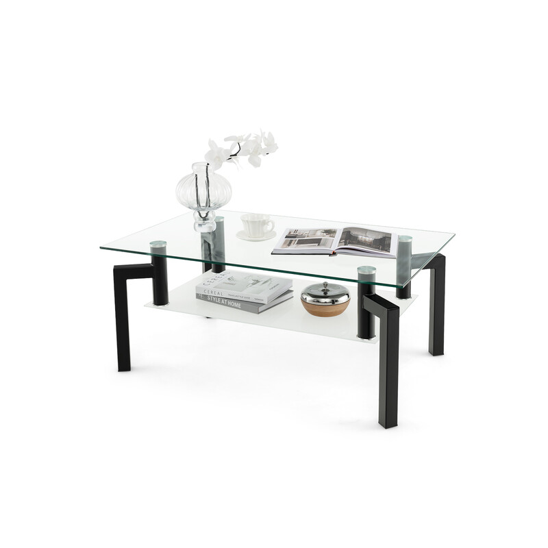 Rundt sofabord i hærdet glas og guldmetal 60x60 cm med to hylder