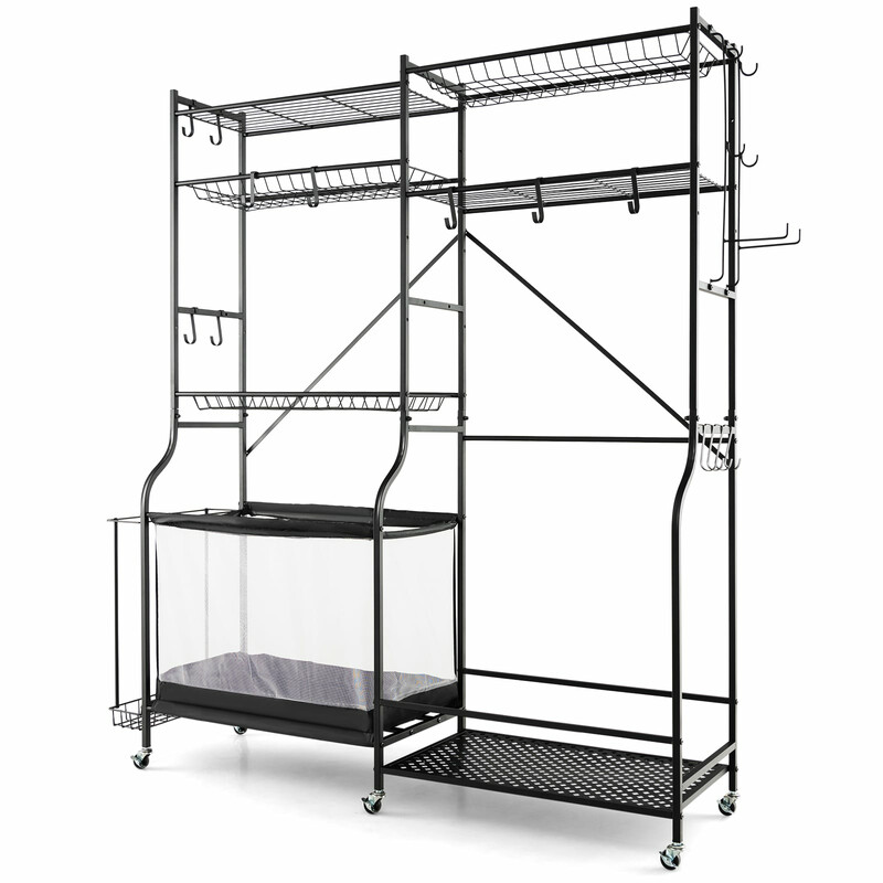 Organiser dine sportsudstyr stilfuldt og praktisk med dette alsidige opbevaringssystem. Den stabile metal konstruktion og smarte design sikrer, at alt udstyr holdes pænt på plads.