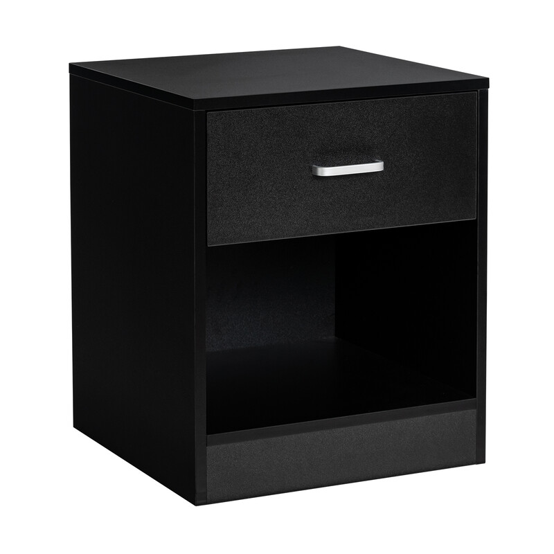 Sort natbord med træplade skuffe og åben hylde 45x42,5x55 cm