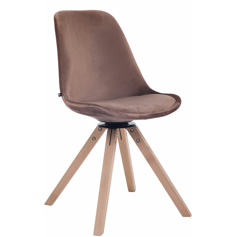 Sædeoverfladen er beklædt med letplejet fløjl, og den polstrede siddeflade sikrer en behagelig siddeoplevelse selv efter længere tid. Med en roterende benplade i birke- eller egetræ og en solid firebenet base passer denne spisestol til enhver situation og er nem at bruge fra alle vinkler.